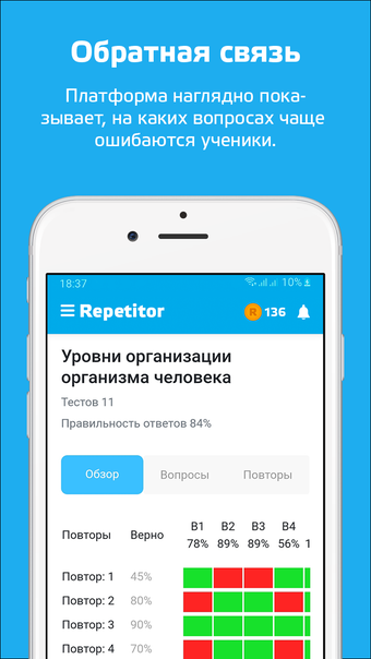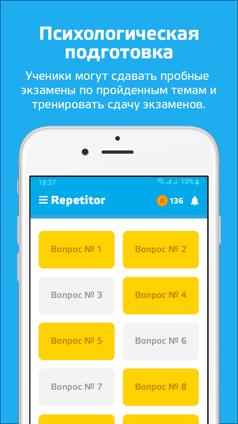 repetitor.mobi هو التطبيق الرسمي للمركز الوطني للقياس والتقويم (NTC) على الهواتف المحمولة. يوفر التطبيق الوصول المجاني إلى جميع خدمات NTC عبر الإنترنت. بالإضافة إلى ذلك، يتيح لك التطبيق الاستفادة من المواد التعليمية بطرق متعددة. على سبيل المثال، يمكنك إجراء الاختبارات والحصول على التعليقات، وكذلك الوصول إلى دورات NTC المجانية عبر الإنترنت.